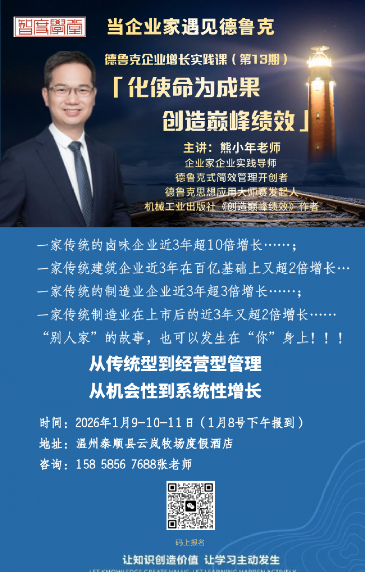 外部力量推动内部改善!智度学堂,作为企业管理培训领域的资深践行者,深知每个企业都拥有独特的基因与发展诉求,来智度学堂,企业长久发展在这里!咨询:18858873781智度学堂小助手